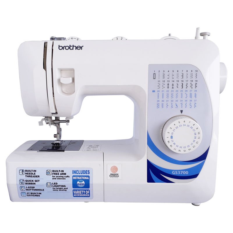 • 37 Stitches • 1 step button hole • Free Arm • Quick set bobbin • LED Light