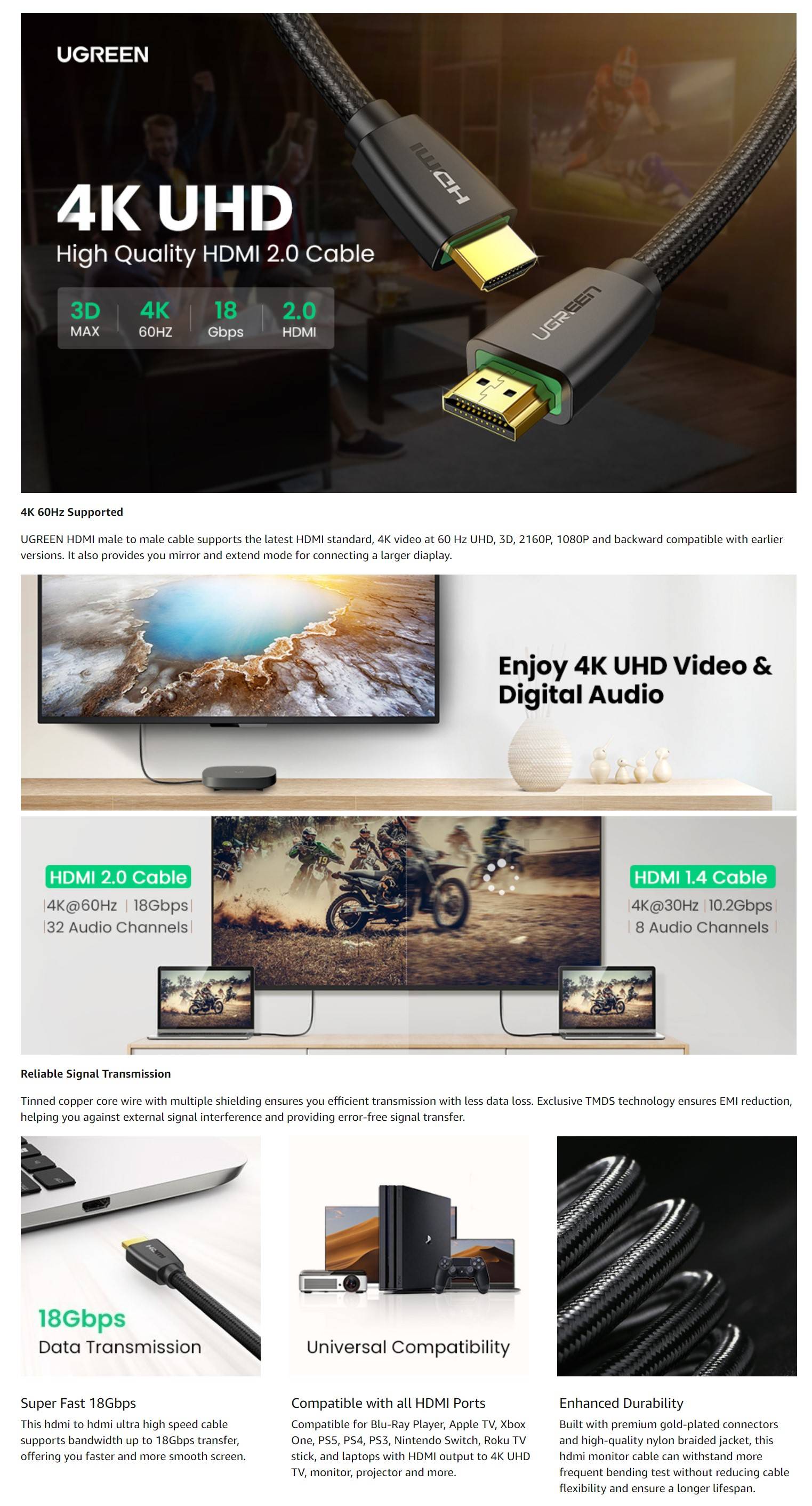 - What’s in the Box1x UGREEN HDMI Male to Male Cable Version 2.0 with braid 1M