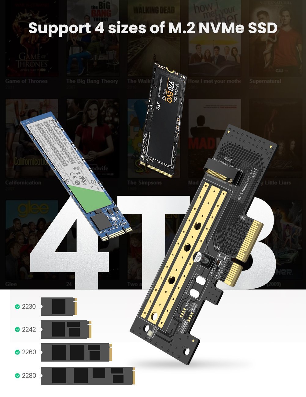Support 4 Sizes of M.2 SSD